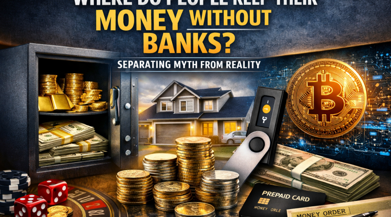 If someone in the United States is holding significant wealth while avoiding traditional banking, it typically falls into one of these categories: physical cash, precious metals, real estate and tangible assets, cryptocurrency held in self-custody, or alternative financial service products such as prepaid cards.
